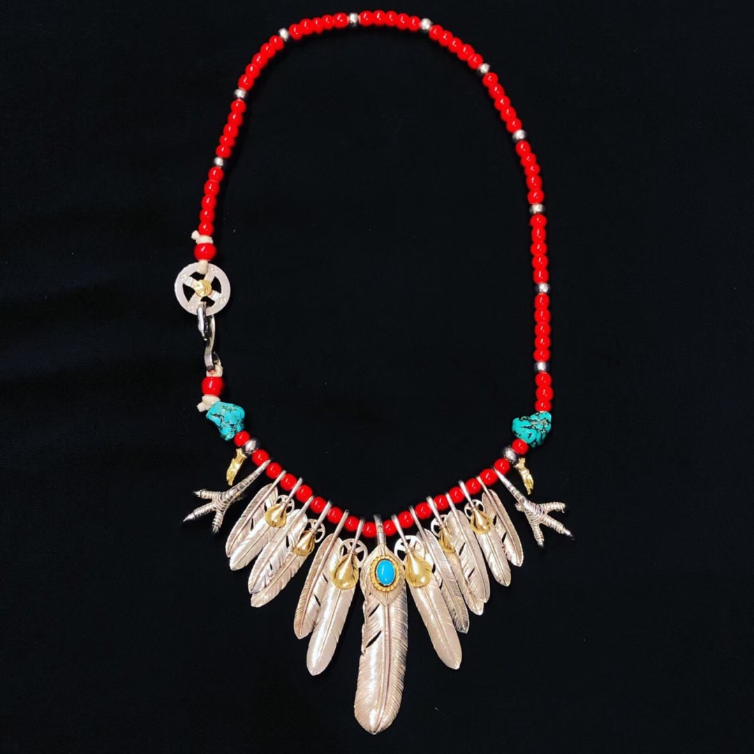 フェザー数枚を革紐で組んだじゃら付けセットです。