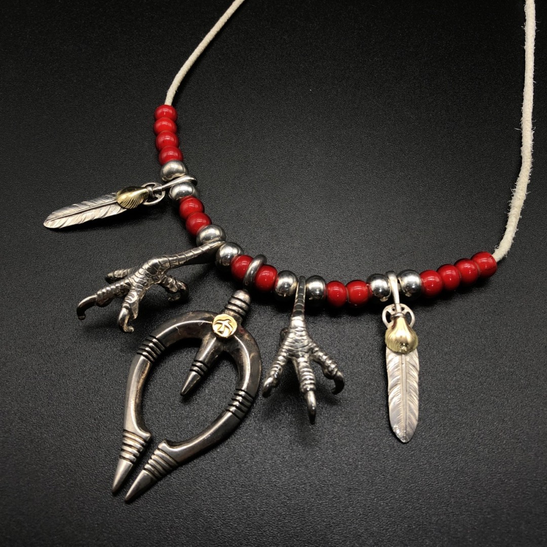 ナジョーネを軸にしたセットで、一見爪とは合わなそうですがビーズの位置やネックレストップの配置を工夫してあげることでこのように見せることもできます!