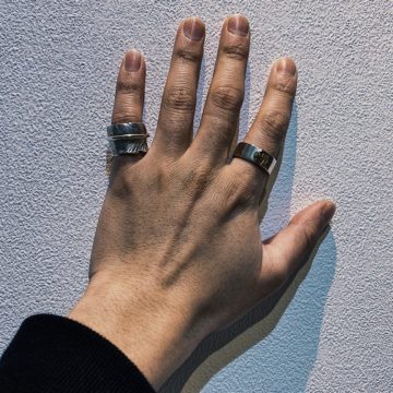 渋くも、しっかりと存在感があり、どちらのリングも服装を問わず合わせやすいシンプルなデザインが魅力的です。